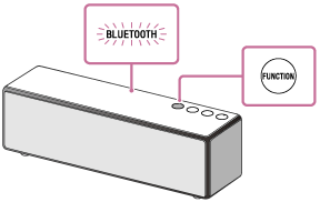 (av/på)-indikatoren tennes med en grønn farge. - Trykk gjentatte ganger på FUNCTION-knappen inntil BLUETOOTH-indikatoren blinker.