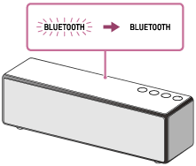 - Når du slår på høyttaleren for første gang etter kjøp, lagres ikke paringsinformasjon i høyttaleren. I så fall, ved å kun plassere høyttaleren i BLUETOOTH-modusen, vil BLUETOOTH-indikatoren begynne å blinke raskt og høyttaleren vil automatisk gå inn i paringsmodusen. Gå deretter til trinn