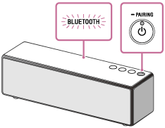 PAIRING-knappen inntil høyttaleren lager pipelyder og BLUETOOTH-indikatoren begynner å blinke raskt.