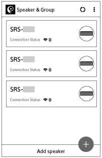 Oversikten over enhetene på hjemmenettverket vises. Du kan velge lydenheten som skal spille av eller gruppere lydenhetene med SongPal Link.