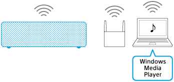 Använd Windows Media Player på din dator för att lyssna på musik från högtalaren via ett Wi-Fi-nätverk.