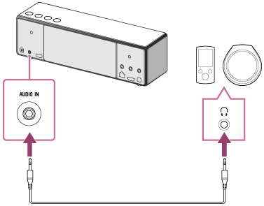 - Anslut en enhet till AUDIO IN-uttaget med en ljudkabel (med stereominikontakter) som finns tillgänglig i handeln.