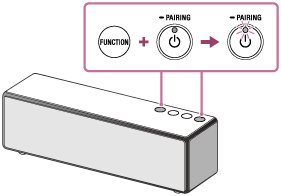 PAIRING-knappen och FUNCTION-knappen intryckta samtidigt när högtalaren är påslagen. När indikatorn slocknar, avaktiveras BLUETOOTH/nätverksstandbyläget och högtalaren växlar till standbyläge.