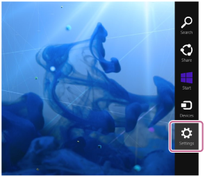 - Flytta muspekaren längst upp (eller längst ner) i höger hörn på skärmen för att visa snabbknapparna, välj sedan [Settings].