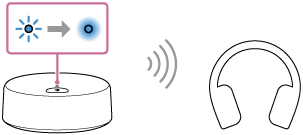 Senderen kommer ud af parringstilstand efter ca. 5 minutter, og indikatoren på senderen stopper med at blinke og vedbliver med at lyse blåt. Men når senderen ikke har nogen parringsinformation, fx når du anvender BLUETOOTH-funktionen på senderen for første gang efter anskaffelsen, forbliver senderen i parringstilstand.