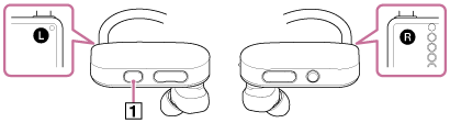 Illustrations indicate a time when the device is being worn, with the right headphone on the right side, and the left headphone on the left side. When not being worn, left and right may be switched.