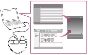 Utilice Content Transfer for Mac para transferir canciones gestionadas desde su ordenador Mac o iTunes al dispositivo.