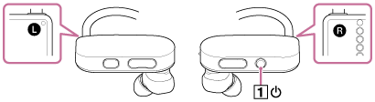 Illustrasjoner indikerer en tid når enheten brukes, med høyre hodetelefon på høyre side, og venstre hodetelefon på venstre side. Når den ikke brukes, kan venstre og høyre byttes om.
