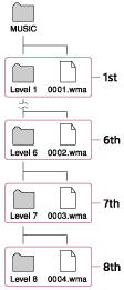 请勿重命名“MUSIC”文件夹。否则,将无法播放。