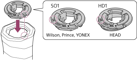 - Achten Sie darauf, die vom Tennisschläger abgenommene Logo-Kappe nicht zu verlieren.