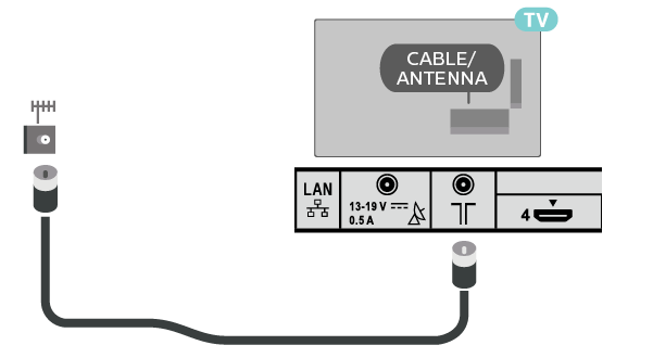 Voit liittää oman antennin tai voit liittää television antennijärjestelmään. Käytä IEC Coax 75 Ohm RF -antenniliitäntää.