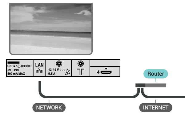 Para ligar o televisor à Internet, necessita de um router de rede com uma ligação à Internet. Utilize uma ligação à Internet (banda larga) de alta velocidade.