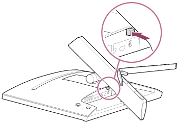 Premere il pulsante di sgancio del supporto sul retro del monitor.