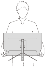 Når du bærer skjermen, vendt skjermsiden mot deg og hold den etter bunnen på venstre og høyre side med begge hender.