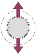 - Når sett forfra, flytt den til høyre (siden med fremspring) for å øke volumet, og flytt den til venstre for å redusere volumet.
