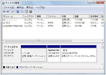 「ディスクの管理」画面で、「ディスク」に「未割り当て」が追加されます。