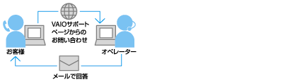 VAIOサポートページで質問を受け付け、電子メールで回答を差し上げるサービスです(VAIOの使いかたなど技術的な質問に限ります)。