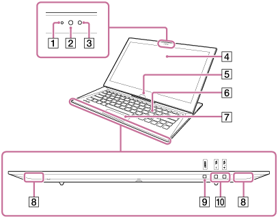 说明 VAIO 电脑正面的部件,如按钮和指示灯。