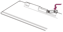 - キーボードを裏返し、乾電池入れのふたの中央部分を押しながら、矢印の方向にスライドさせる。