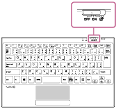 ワイヤレスキーボードのキーボード電源スイッチ(タッチパッドOFF機能付き)を操作することによって、ワイヤレスキーボードの電源オン/オフやタッチパッドの有効/無効を切り換えることができます。