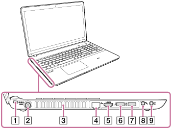 说明 VAIO 电脑侧面的部件,如连接端口。