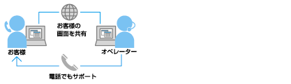 電話でのお問い合わせの際に、オペレーターがインターネット経由でお客様のVAIOの画面を確認しながら、トラブルの内容を確認したり、使いかたなどをご案内するサービスです。