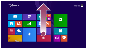 「スタート」画面で、上に向かって軽く指を払います。