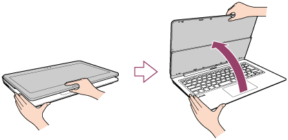 - ディスプレイが上を向いた状態で矢印の方向へ引く。