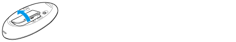 Dé vuelta el mouse al revés. Presione el centro de la cubierta y deslice la cubierta de la batería en la dirección de la flecha.