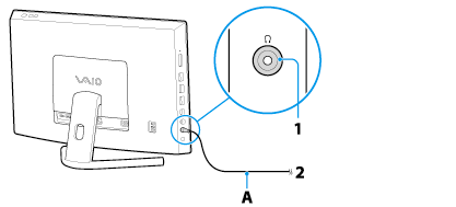 Liitä äänijohto (A) (myydään erikseen) VAIO-tietokoneen