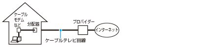 ケーブルテレビの回線を使ってインターネットに接続します。通信速度は事業者によって異なり、ADSLあるいは光(FTTH)と同程度で接続ができます。