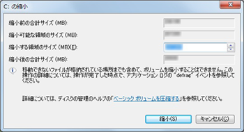 ただし、縮小可能な領域の最大サイズはシステムで決められているため、表示されているサイズよりC:ドライブをさらに小さく縮小することはできません。