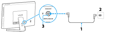 Conecte uma extremidade do cabo coaxial de TV (1) ao seu aceso de serviço de cabo (tomada de parede) (2).