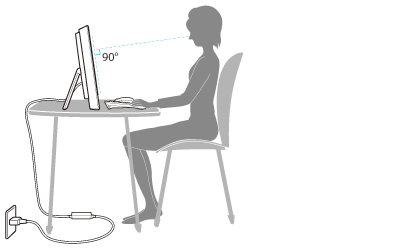 Você coloque o computador de frente para seu corpo e onde possa se sentar com a coluna reta e manter os antebraços paralelos com o chão.