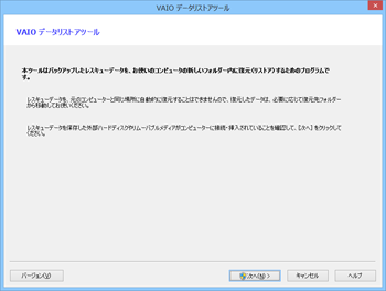 「VAIO Care (レスキューモード):リカバリーやメンテナンス」を使ってバックアップしたデータを、「VAIO データリストアツール」で復元します。