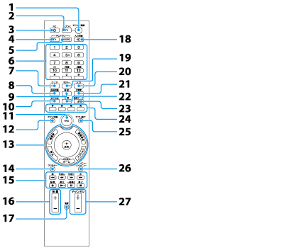 数字ボタンの「5」、再生ボタン、チャンネルボタンの「+」には突起が付いています。