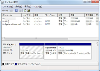 「ディスクの管理」画面で、「ディスク」に「未割り当て」が追加されます。