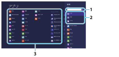 検索チャームを開くと【詳細】、起動中のアプリ内を検索できます。