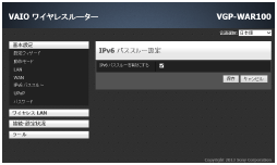 「IPv6 パススルーを有効にする」にチェックを入れると、IPv6のパケットを内外で通信できるようになります。