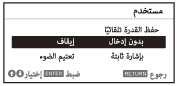 (أعلى/أسفل) أو المفتاح ECO MODE، ثم قم باختيار إما الوضع [ECO] أو [مستخدم].- [ECO]: اضبط كل تهيئة على القيمة التي تحقق أقصى توفير للطاقة.
