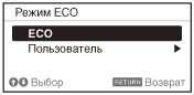 (Вверх/вниз) или клавишу ECO MODE, а затем выберите режим [ECO] или [Пользователь].- [ECO]: задайте для каждой настройки значение, которое обеспечивает максимальную экономию энергии.