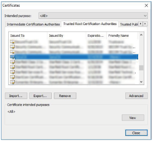 Normalerweise werden CA-Zertifikate unter [Vertrauenswürdige Stammzertifizierungsstellen] gespeichert.