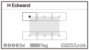 Für [H Eckwand] gibt es 6 Einstellpunkte, nämlich links oben, oben in der Mitte, rechts oben, links unten, unten in der Mitte und rechts unten.