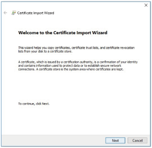 [Bienvenue dans l’Assistant Importation du certificat] s’affiche.