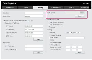 Cliquez sur [Select] sous [FW Upload] pour sélectionner le fichier à mettre à jour, puis cliquez sur [Apply].
