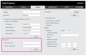 Lors du premier accès à la page [Setting], saisissez le User Name « root » et le Password « Projector ».