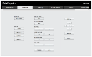 Depuis le panneau de commande affiché dans votre navigateur, vous pouvez configurer les privilèges d’accès et vérifier l’état du projecteur.