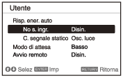 (Su/Giù) o il tasto ECO MODE, quindi selezionare il modo [ECO] o [Utente].- [ECO]: configurare ogni impostazione al valore che consente il maggior risparmio di energia.