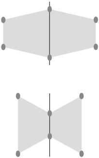 Se l’immagine è distorta come la forma riportata nell’immagine, selezionare [Angolare a parete V] e regolare le posizioni dei punti di regolazione con i tasti