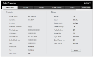 ページ切り替えタブの[Information]をクリックして[Information]ページを開き、プロジェクターの現在の状態を確認できます。